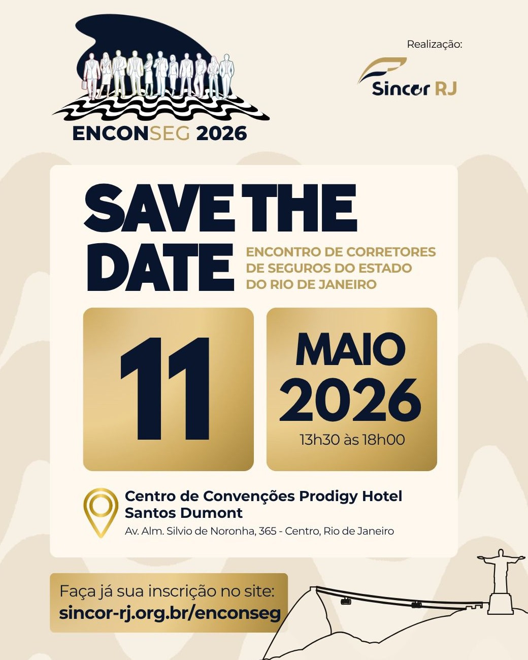 A diretoria do Sincor-RJ anuncia que a edição 2026 do ENCONSEG - Encontro de Corretores de Seguros do Estado do Rio de Janeiro - será realizada no dia 11 de maio (2ª feira), das 13h30 às 18h, no Centro de Convenções Prodigy Hotel Santos Dumont, localizado na Av. Almirante Sílvio de Noronha 365 – Centro – Rio de Janeiro. “Estamos preparando um grande evento, que discutirá as principais questões de interesse dos corretores de seguros. O objetivo é dar continuidade ao projeto de capacitação e desenvolvimento do Corretor de Seguros, com foco na experiência positiva do consumidor, e consequente crescimento das oportunidades e do mercado de seguros”, afirma o presidente do Sindicato, Ricardo Garrido.