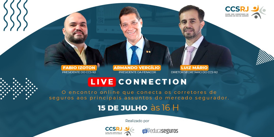 Com audiência de cerca de 200 corretores de seguros de todo o Brasil, a segunda LIVE CONNECTION, promovida pelo Clube dos Corretores de Seguros do Rio de Janeiro (CCS-RJ) e pela Educa Seguros, contou com o esclarecimento de questões essenciais para a atuação da categoria pelo presidente da Fenacor, Armando Vergilio.