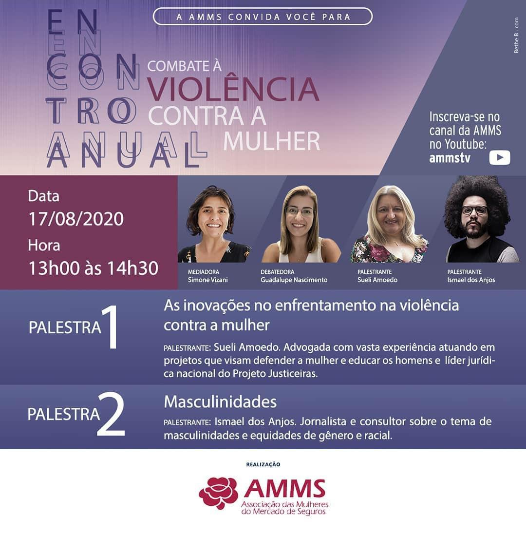 O encontro anual da AMMS - Associação das Mulheres do Mercado de Seguros. - , realizado nesta segunda-feira (17 de agosto) por meio virtual, abordou projetos de proteção e combate à violência contra a mulher no atual cenário social, além do tema “masculinidades e a importância do papel dos homens neste contexto”.